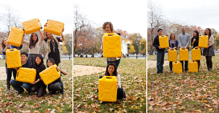 charity: water interns pose w/ ubiquitous Jerry cans to spell out “c:w”